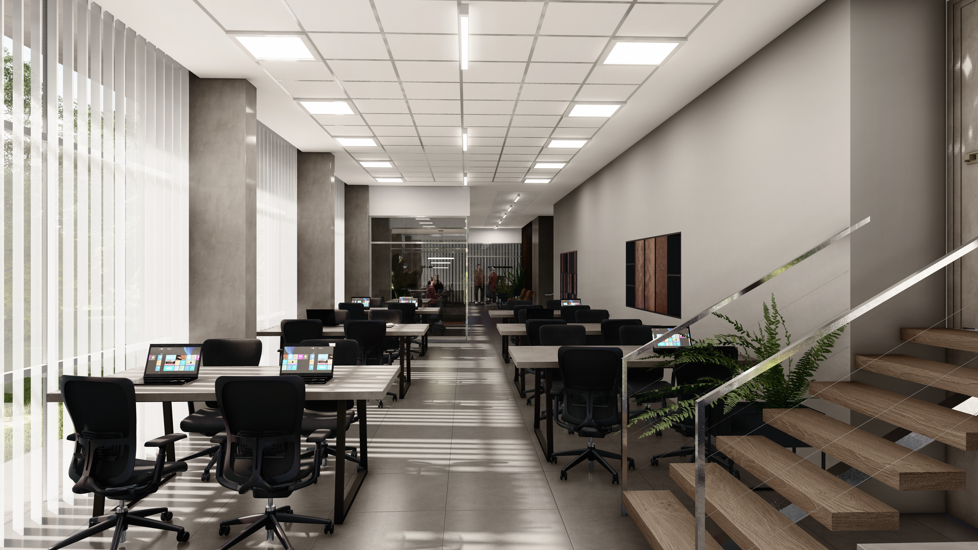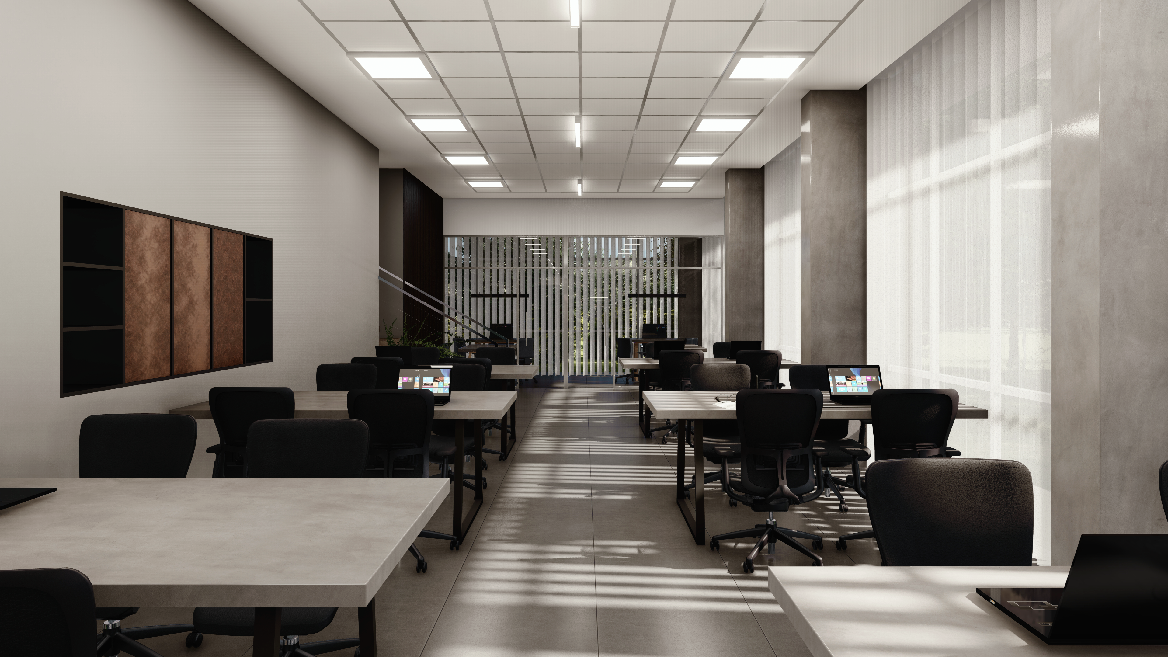 Este proyecto repiensa los espacios de trabajo a partir de los conceptos de flexibilidad y polivalencia. Diseñamos ambientes adaptables que pueden reconfigurarse según las necesidades de la empresa, sin modificaciones constructivas. Los módulos privados permiten tanto el uso individual como la posibilidad de expansión para funciones diversas, mientras que los espacios compartidos se adaptan a diferentes tamaños de equipos. Además, los servicios están estratégicamente ubicados para maximizar la eficiencia.